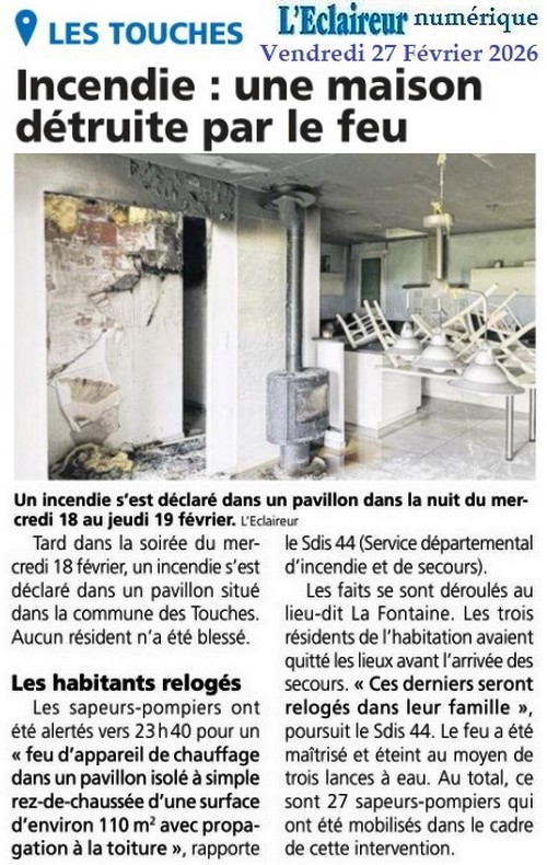 Incendie : une maison détruite par le feu - L’Eclaireur 27 février 2026