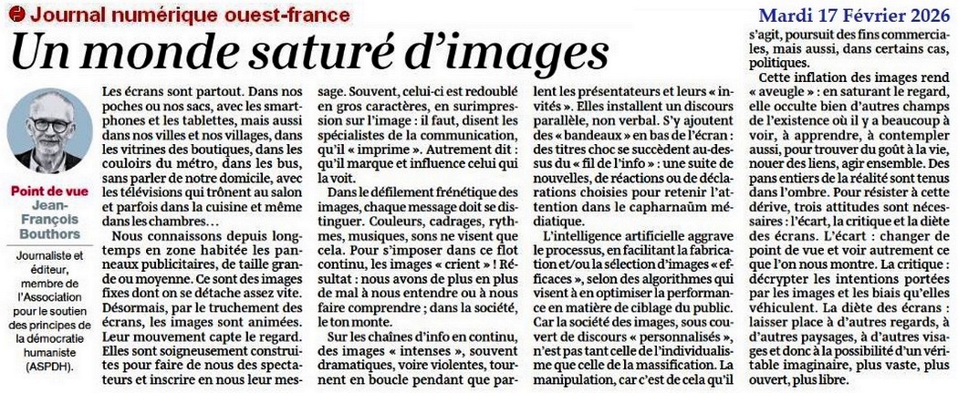 Un monde saturé d’images - Ouest-France 17 février 2026