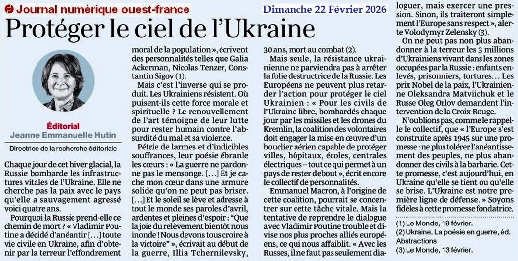Protéger le ciel de l’Ukraine - Ouest-France 22 février 2026
