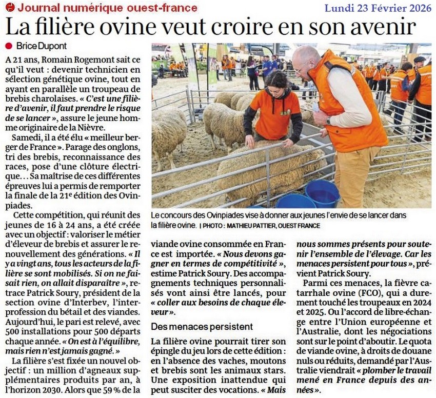 La filière ovine veut croire en son avenir - Ouest-France 23 février 2026