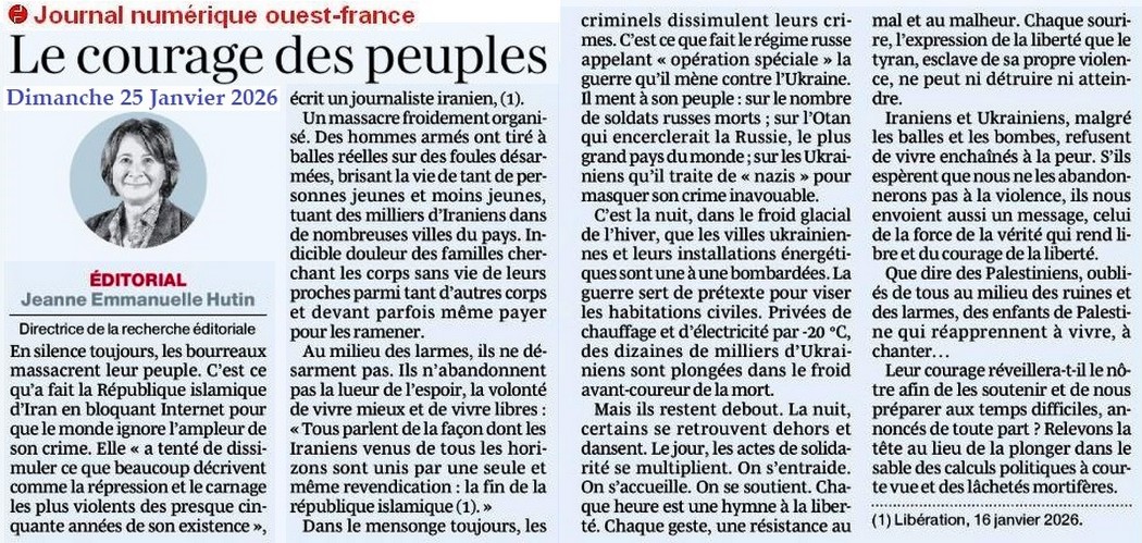 Le courage des peuples - Ouest-France 25 janvier 2026
