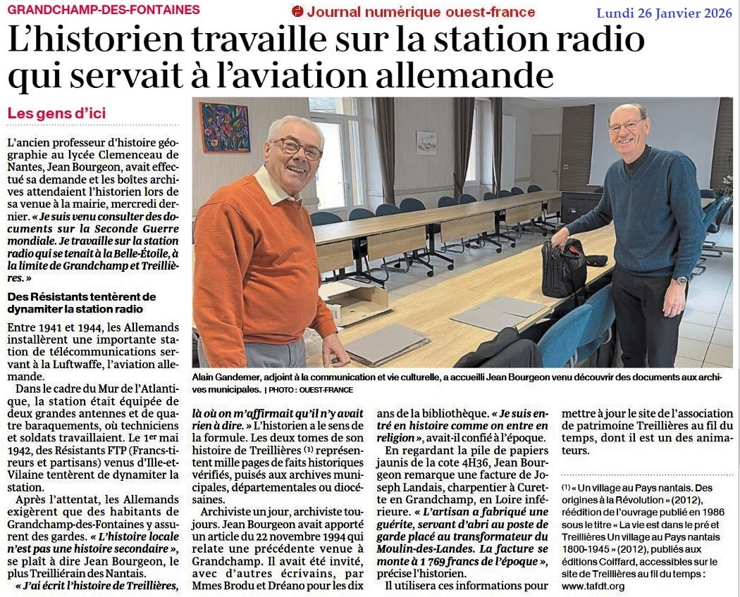 L’historien travaille sur la station radio qui servait à l’aviation allemande - Ouest-France 26 janvier 2026