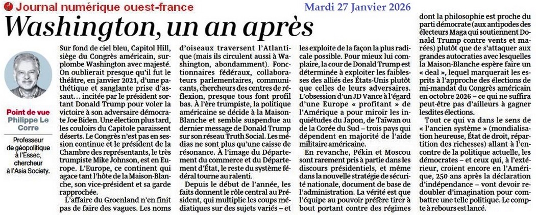 Washington, un an après - Ouest-France 27 janvier 2026