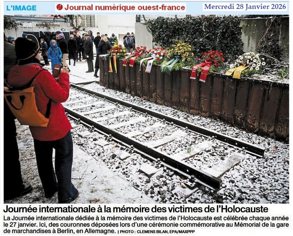 Journée internationale à la mémoire des victimes de l’Holocauste - Ouest-France 28 janvier 2026