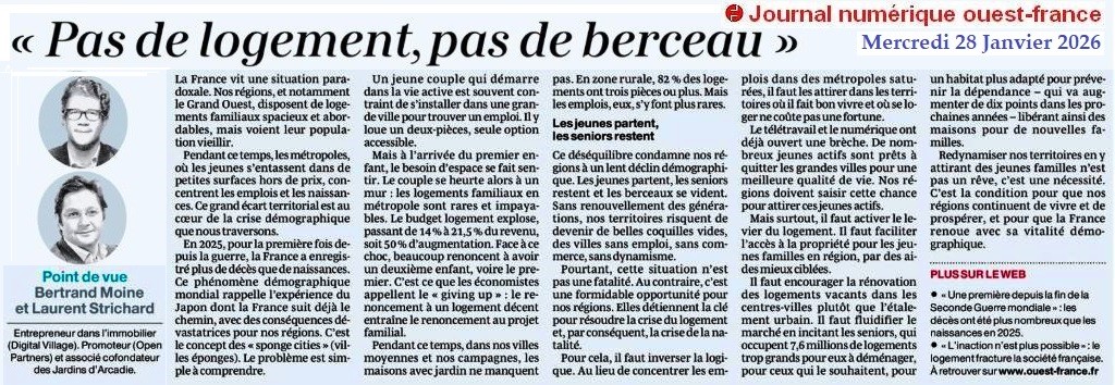 « Pas de logement, pas de berceau » - Ouest-France 28 janvier 2026