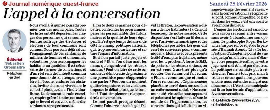 L’appel à la conversation - Ouest-France 28 février 2026