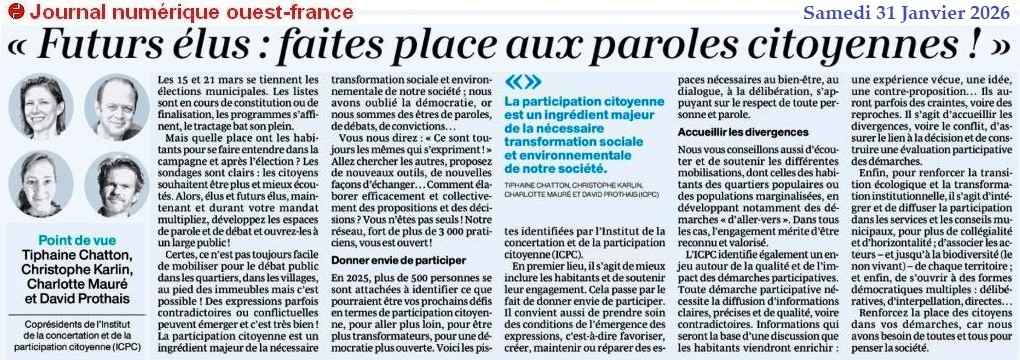 « Futurs élus : faites place aux paroles citoyennes ! » - Ouest-France 31 janvier 2026