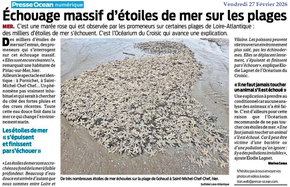 Echouage massif d’étoiles de mer sur les plages - Presse Océan 27 février 2026