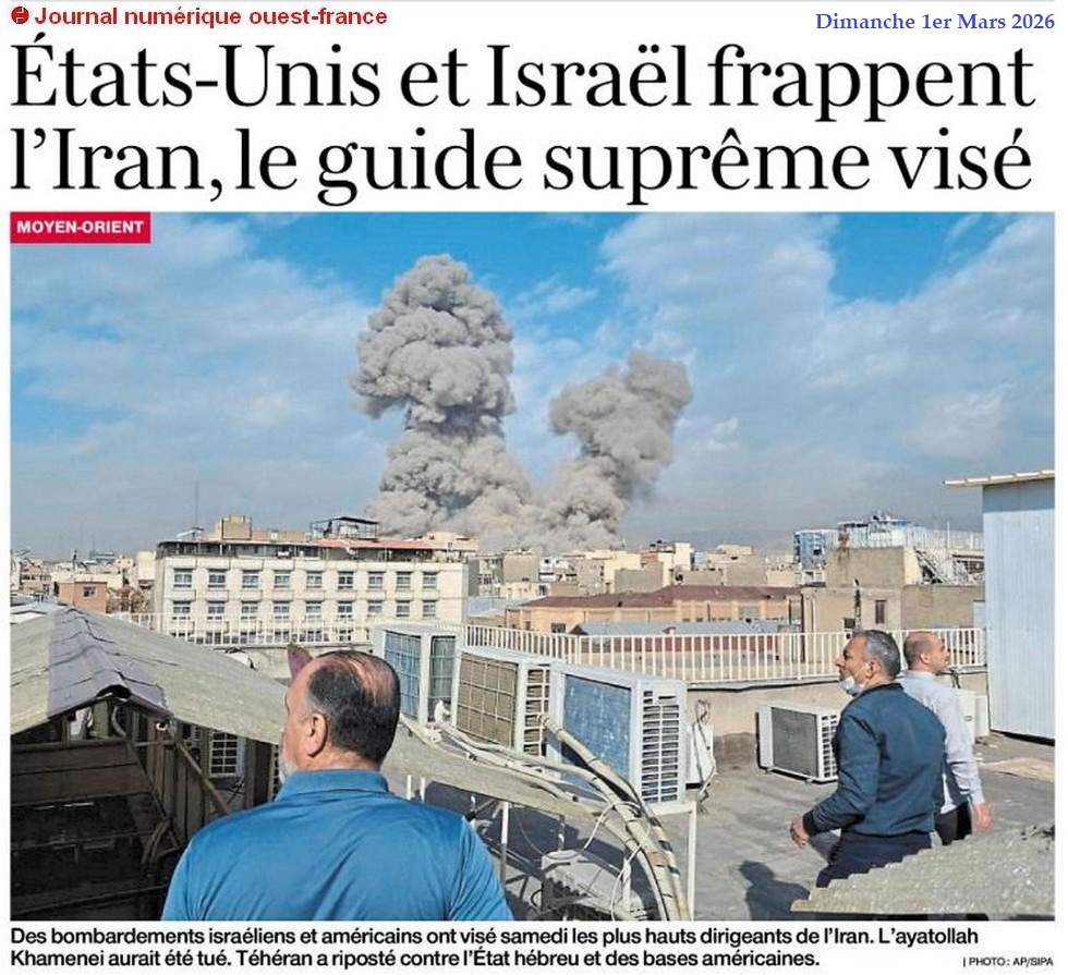 Etats-Unis et Israël frappent l’Iran, le guide suprême visé - Ouest-France 1er mars 2026
