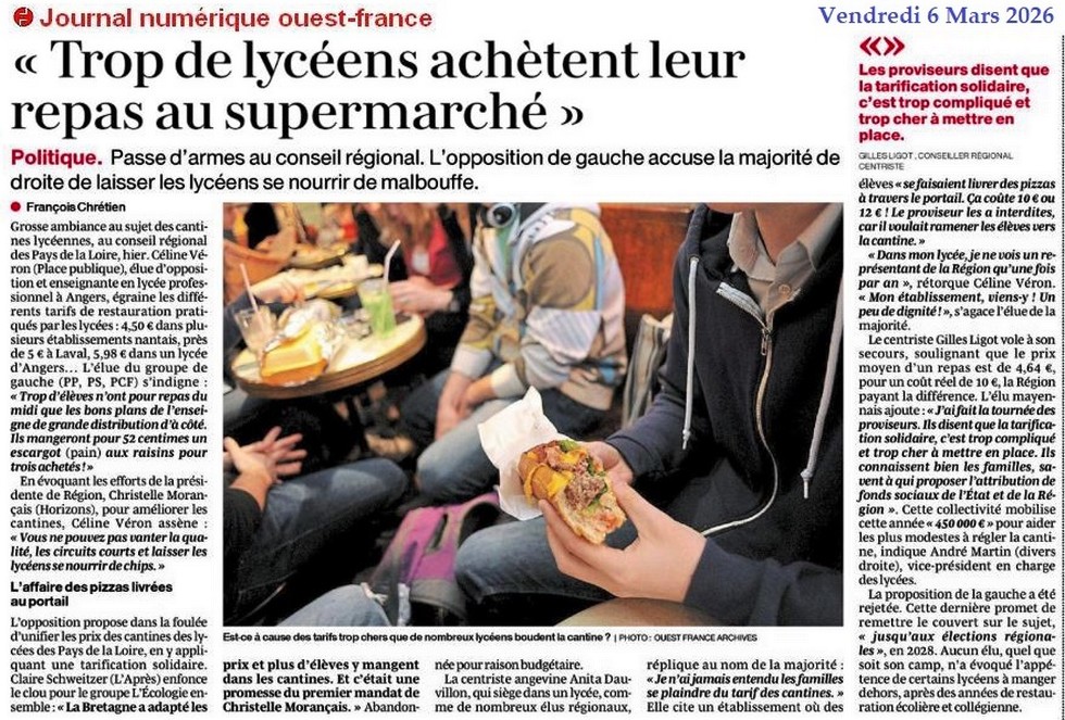 « Trop de lycéens achètent leur repas au supermarché » - Ouest-France 6 mars 2026