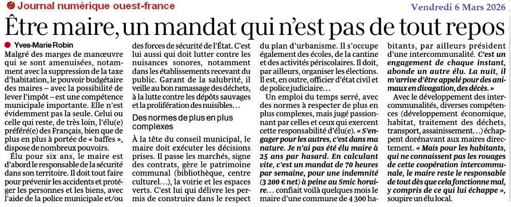 Etre maire, un mandat qui n’est pas de tout repos - Ouest-France 6 mars 2026