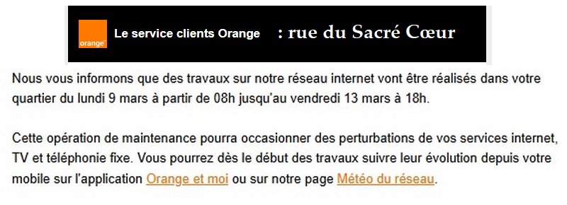 Travaux "Orange" rue du Sacré Cœur du lundi 9 au vendredi 13 mars 2026