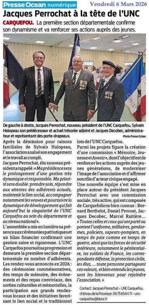 Jacques Perrochat à la tête de l’UNC - Presse Océan 6 mars 2026
