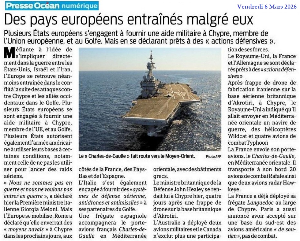 Des pays européens entraînés malgré eux - Presse Océan 6 mars 2026