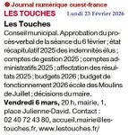 Conseil municipal vendredi 6 mars à 20 h. - Ouest-France 23 février 2026