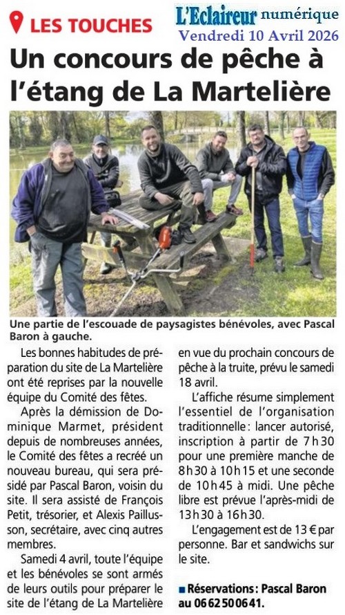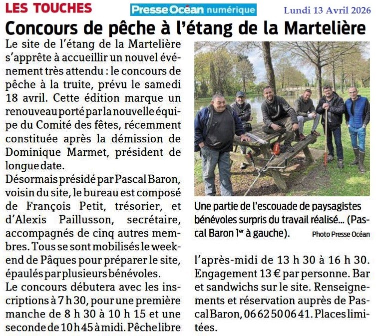 Concours de pêche à l’étang de la Martelière - Presse Océan 13 avril 2026