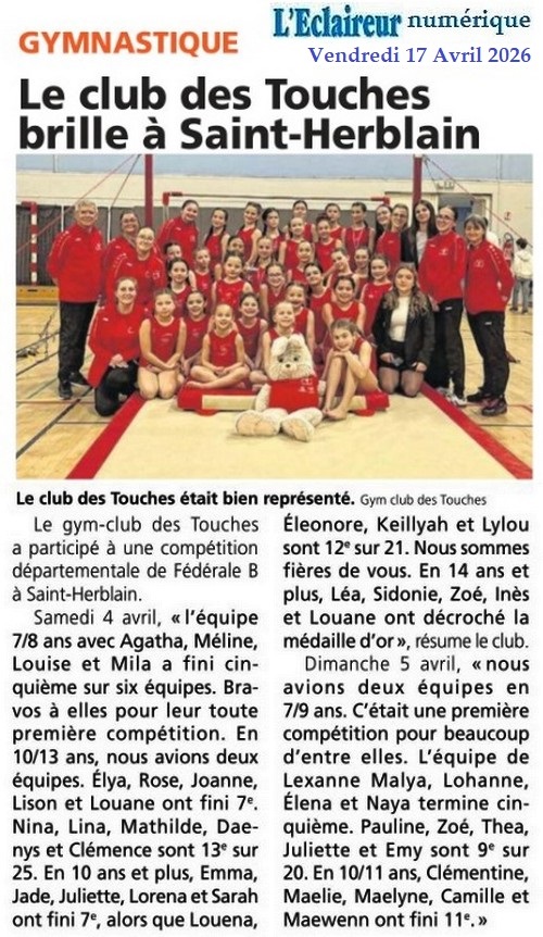 Le club des Touches brille à Saint-Herblain - L’Eclaireur 17 avril 2026