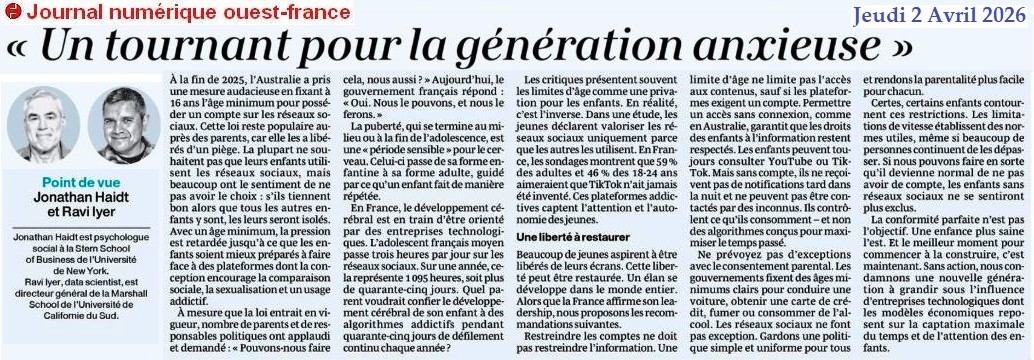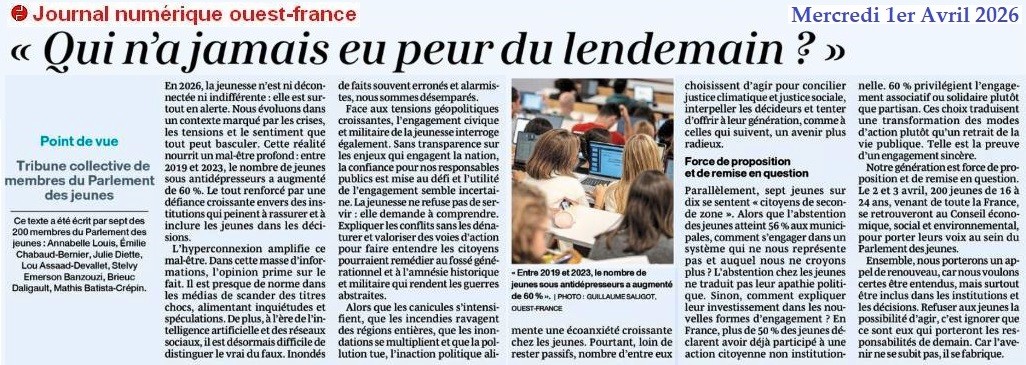« Un tournant pour la génération anxieuse » - Ouest-France 2 avril 2026