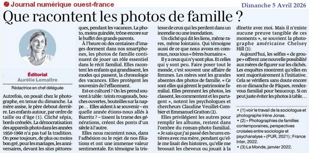 Que raconte les photos de familles ? - Ouest-France 5 avril 2026