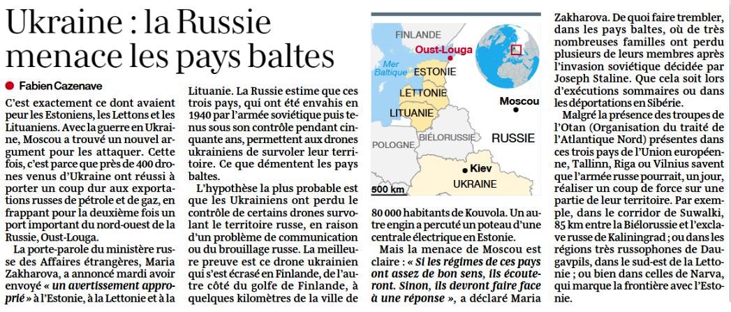Ukraine : la Russie menace les pays baltes - Ouest-France 9 avril 2026