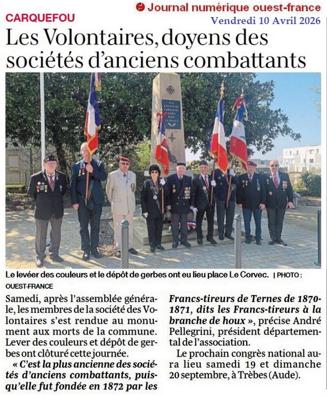 Les Volontaires, doyens des sociétés d’anciens combattants - Ouest-France 10 avril 2026
