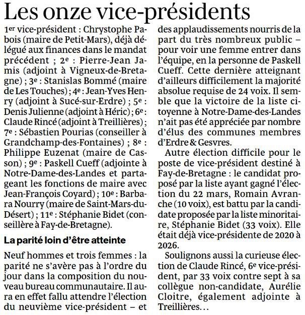 Le conseil communautaire d’Erdre & Gesvres se met en ordre de marche - Ouest-France 11 avril 2026 - 2/2
