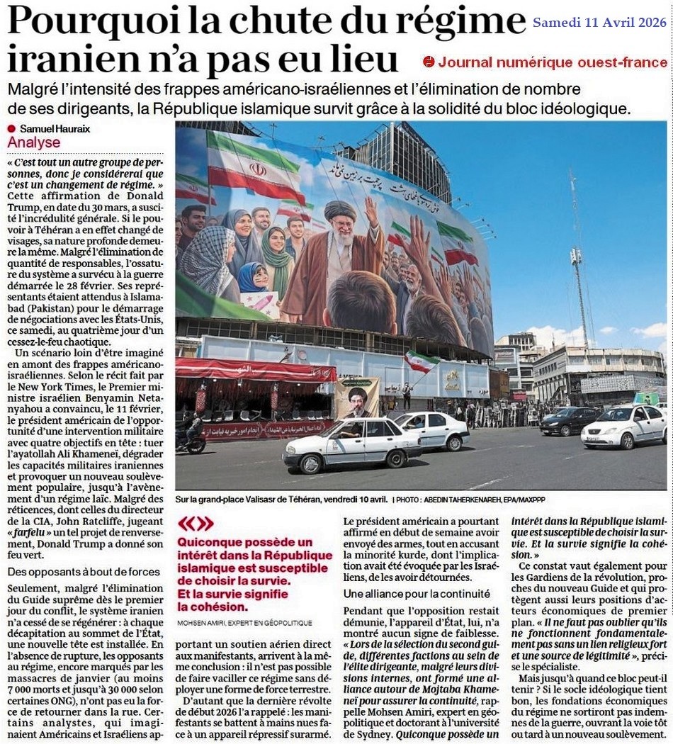 Pourquoi la chute du régime iranien n’a pas eu lieu - Ouest-France 11 avril 2026