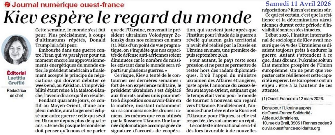 Kiève espère le regard du monde - Ouest-France 11 avril 2026