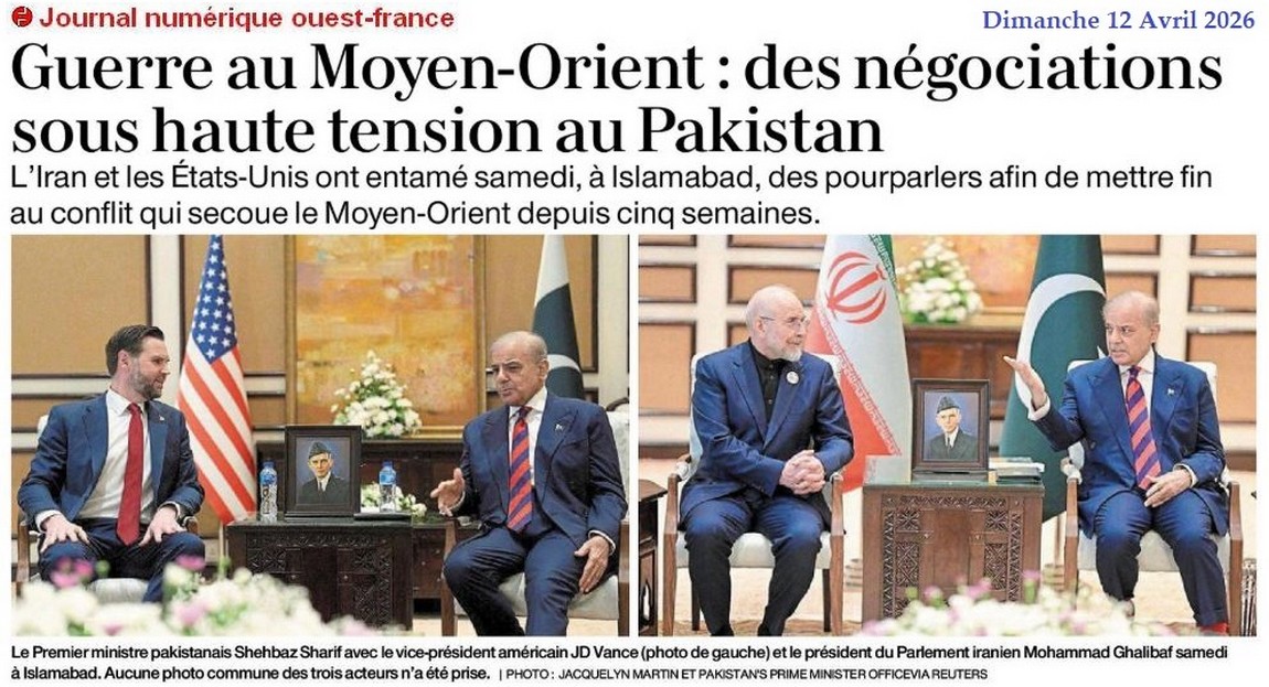 Guerre au Moyen-Orient : des négociations sous haute tension au Pakistan - Ouest-France 12 avril 2026 - 2/2
