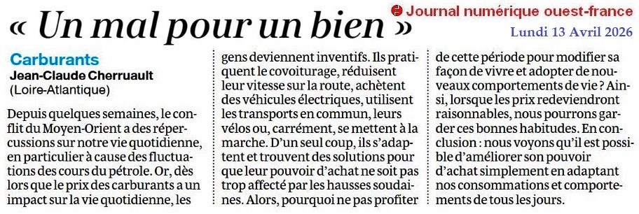 « Un mal pour un bien » - Ouest-France 13 avril 2026