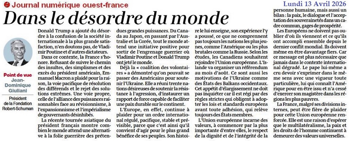 Dans le désordre du monde - Ouest-France 13 avril 2026