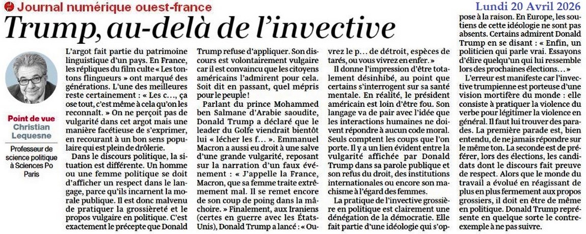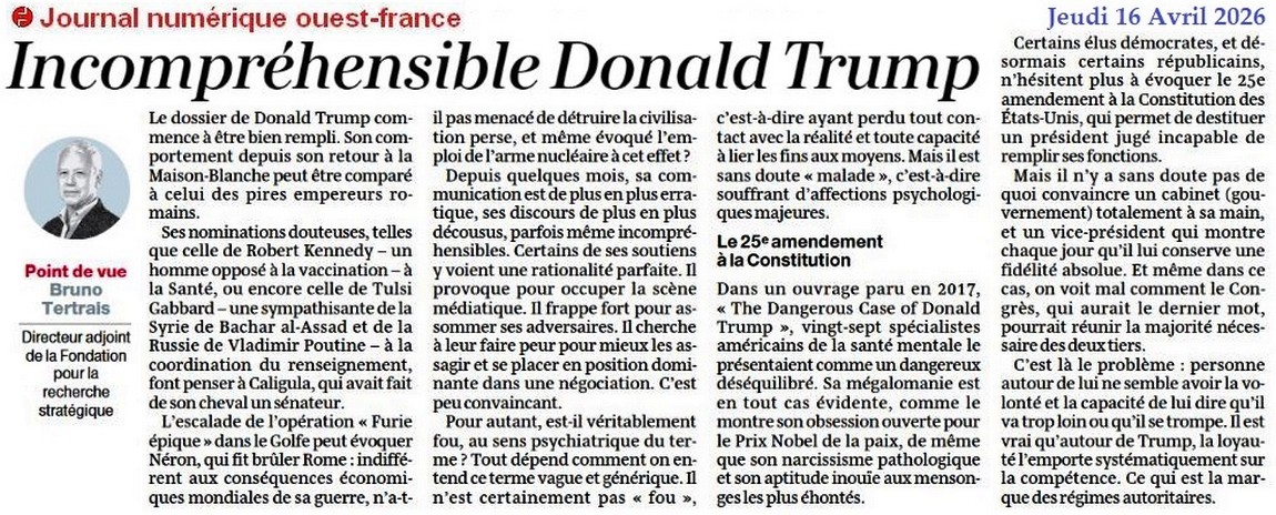 Incompréhensible Donald Trump - Ouest-France 16 avril 2026