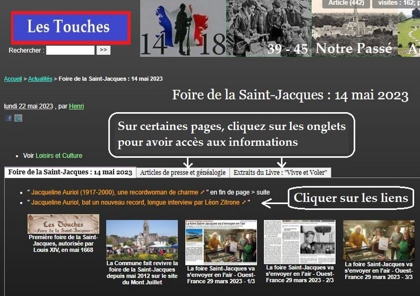 Sur certaines pages, il faut cliquer sur les onglets et liens pour voir les informations