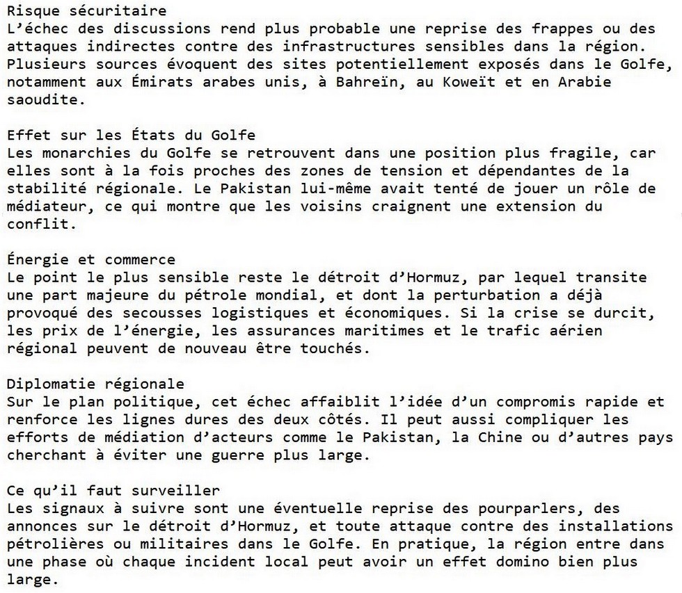 Echec de négociations au Pakistan - Perplexity 12 avril 2026 - 2/2