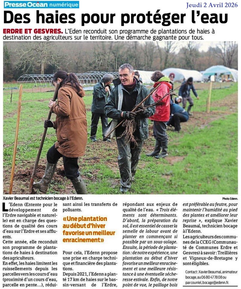 Des haies pour protéger l’eau - Presse Océan 2 avril 2026