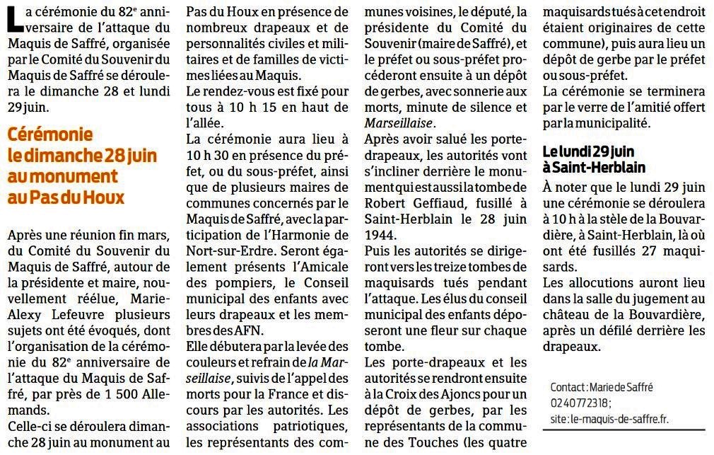 Il y a 82 ans, le Maquis de Saffré - Presse Océan 3 avril 2026 - 2/2