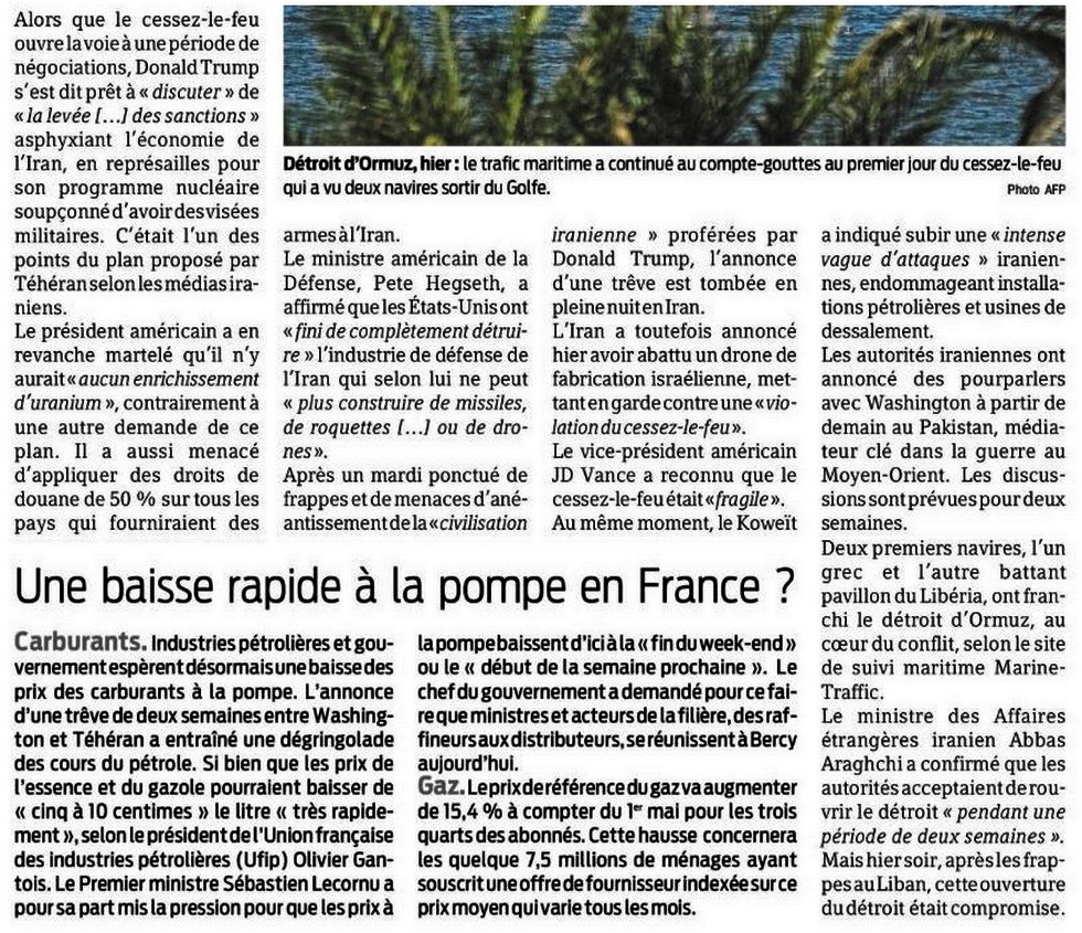 Trève fragile autour d’Ormuz - Presse Océan 9 avril 2026 - 2/2