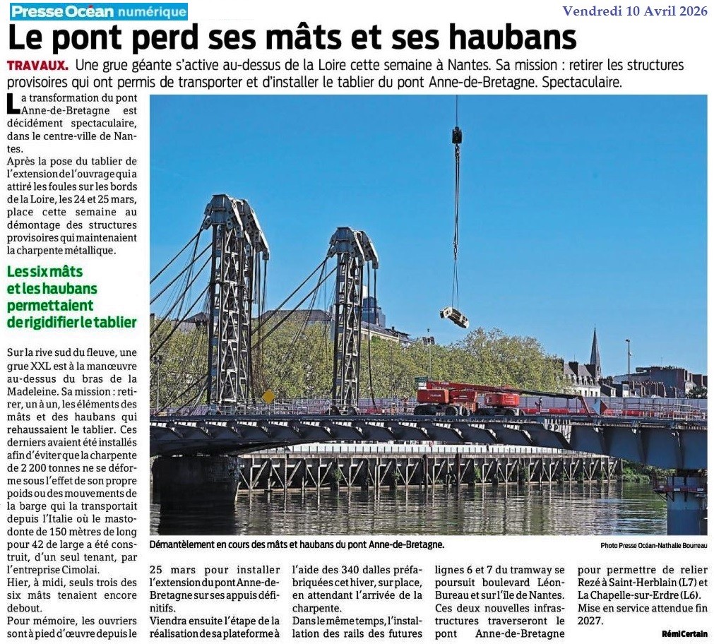 Le pont perd ses mâts et ses haubans - Presse Océan 10 avril 2026