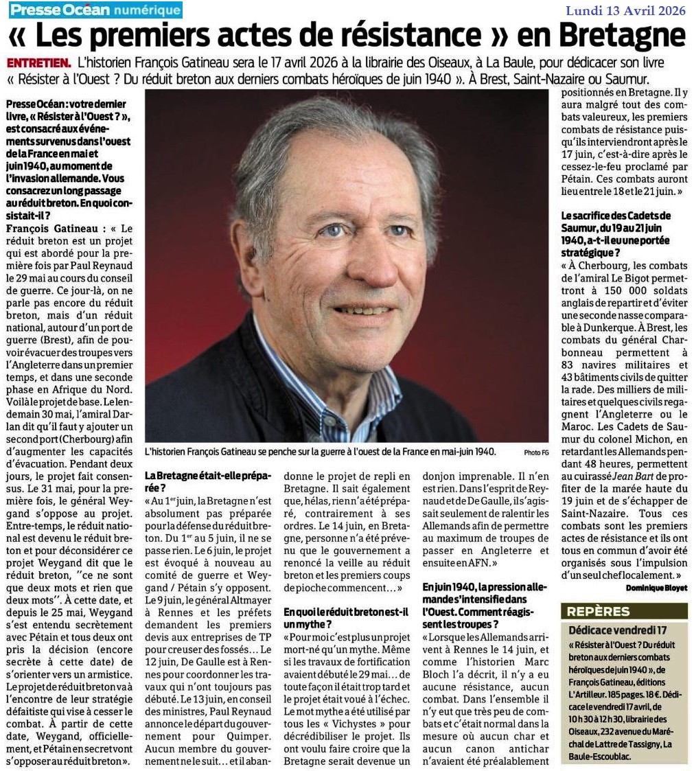« Les premiers actes de résistance » en Bretagne - Presse Océan 13 avril 2026