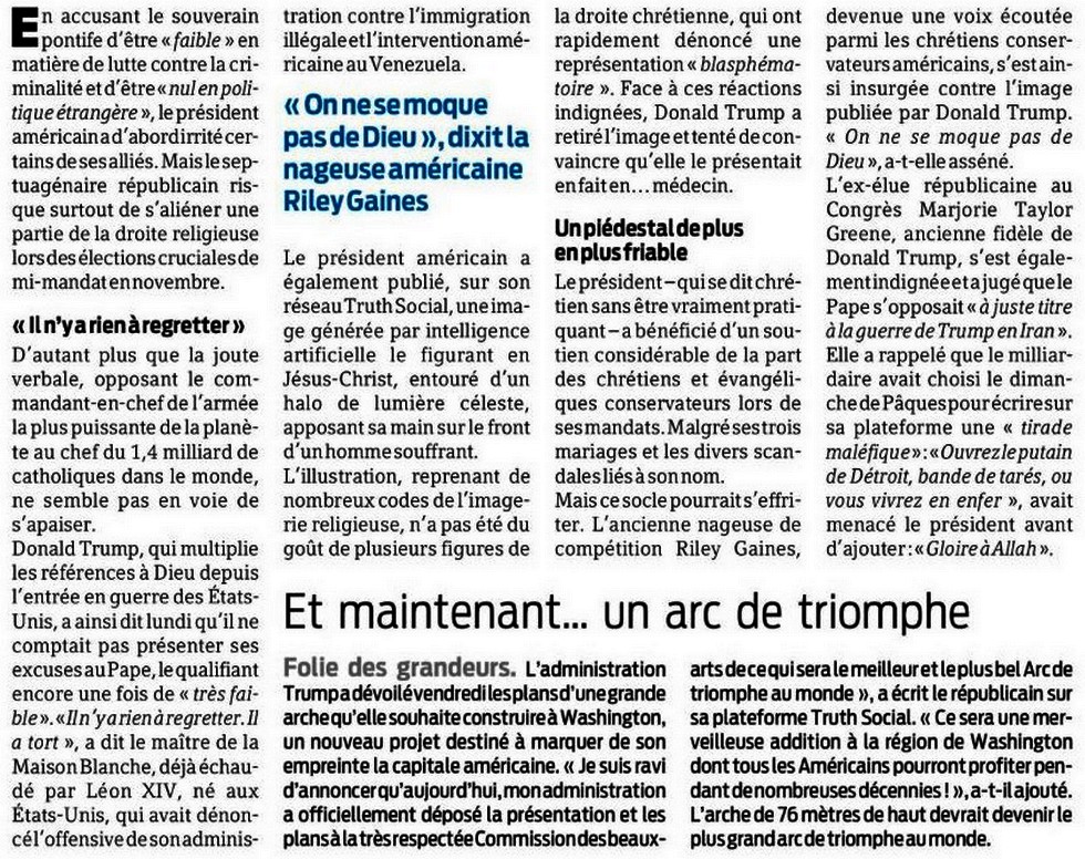 Le jeu de Trump avec le Pape - Presse Océan 15 avril 2026 - 2/2