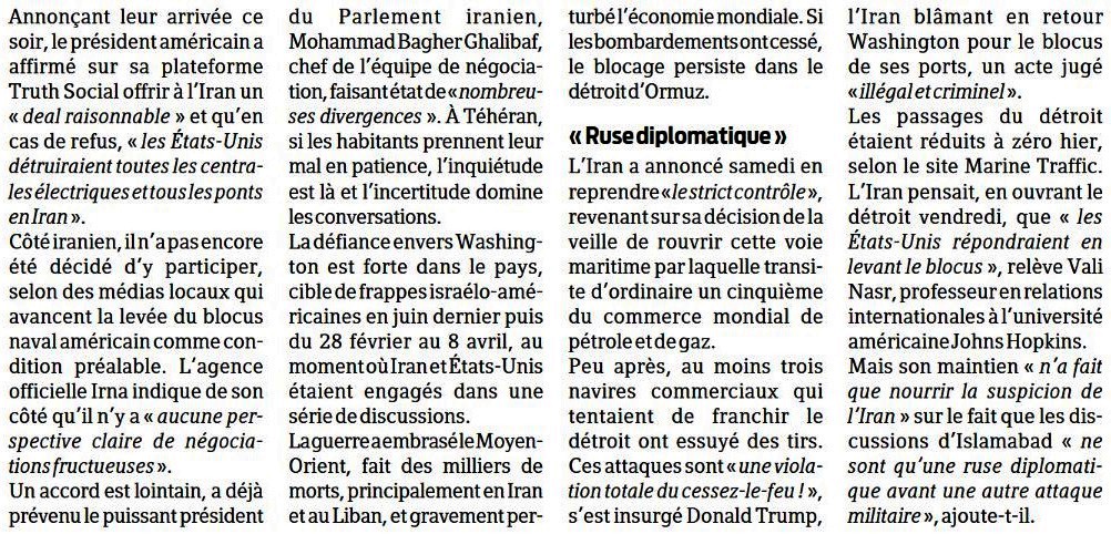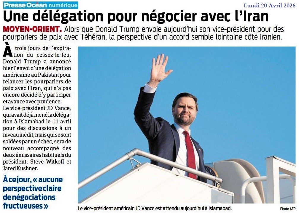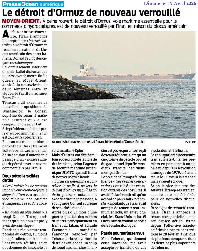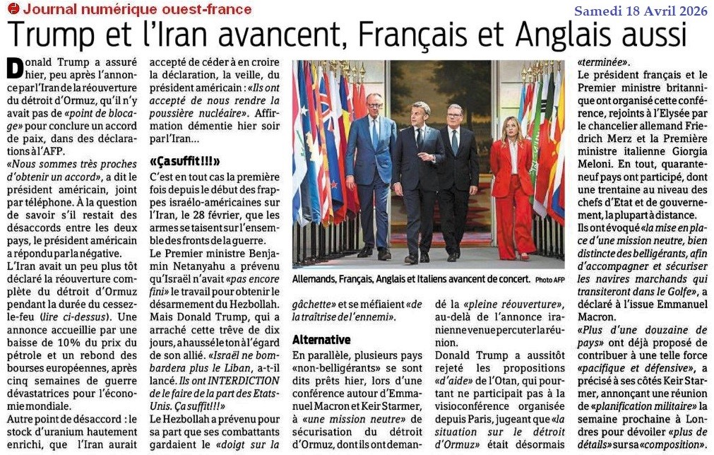 Trump et l’Iran avancent, Français et Anglais aussi - Presse Océan 18 avril 2026