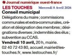 Conseil municipal vendredi 10 avril à 20 h. - Ouest-France 8 avril 2026