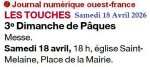 Messe samedi 18 avril à 18 h. - Ouest-France 18 avril 2026